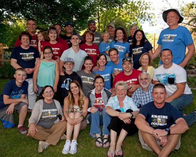 When you have a group of friends that are so close to family, you consider them cousins, but when you were little you may have had kissing incidents in the closet. You call a reunion the kissing cousins reunion.