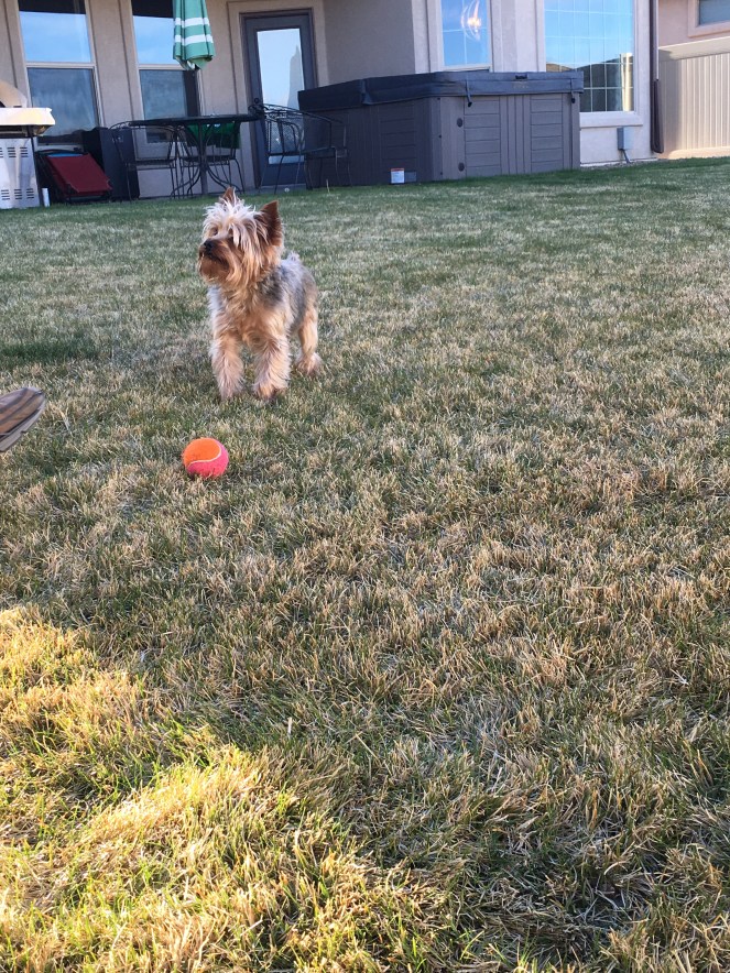 As I sat in the grass and watched Stanley chase the ball. Reagan try to steal the ball. And Ryan try to appease both. I felt thankful for the game of fetch. Most of the time Stanley drives me nuts with fetch, trying to play all day and whining and dropping the ball in front of me constantly. But tonight fetch brought the family together for 10 minutes of fun. And I am glad I was able to just appreciate the game Stanley lives for!